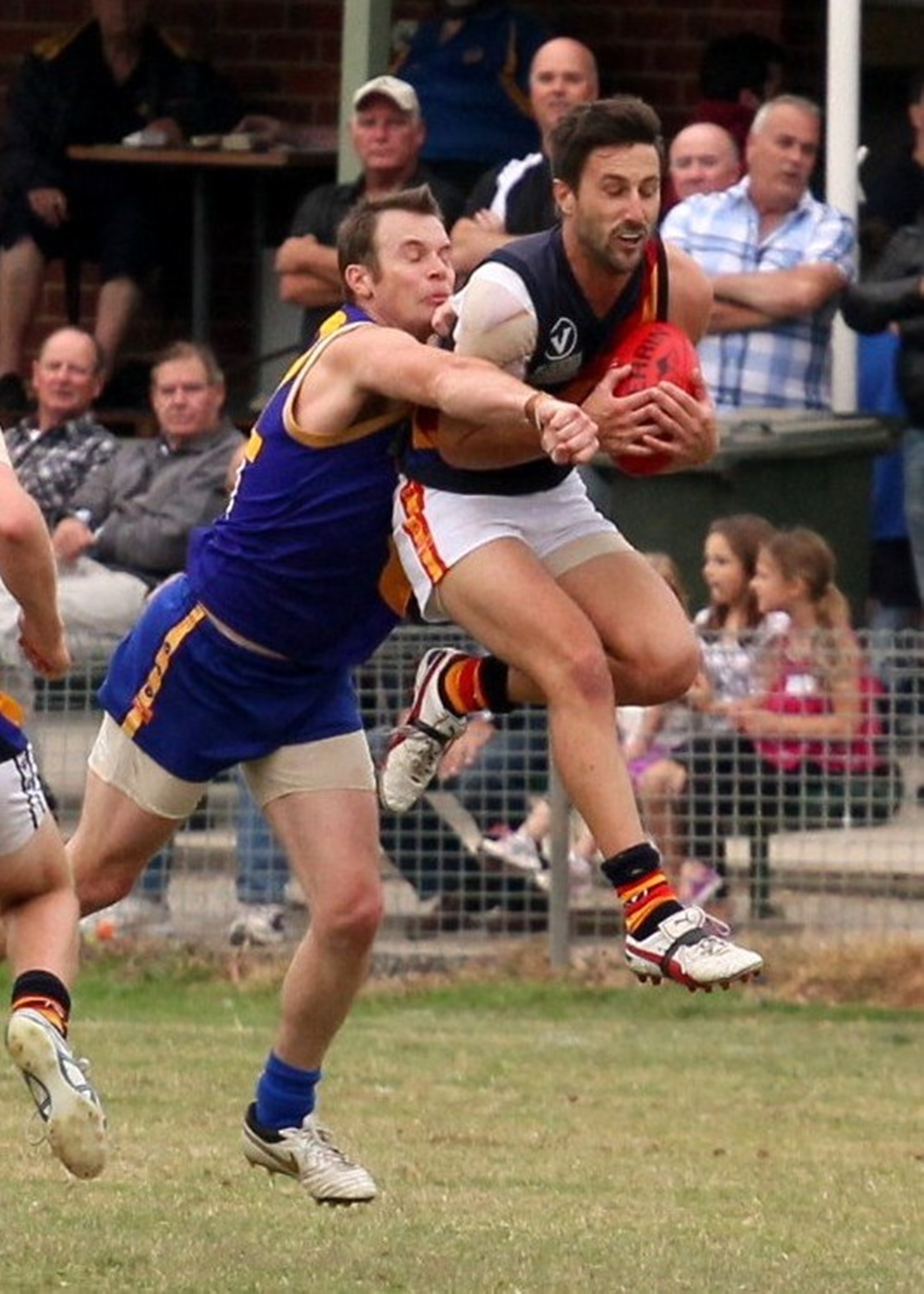 The opening 10 minutes of the first quarter was an arm wrestle with the Tigers managing only minor scores. The Doherty brothers (Tim and Steve), who were even harder to tell apart in the conditions, were in everything early and kept the cake of soap moving SBMTβs way. Carey opened their account first but a good finish from Mark Geshke and a great roverβs goal from Chris Mangoni saw the Tigers take back the lead. Cameron Hansen looked dangerous and it wasnβt long before he booted the Tigers third. Swingman Paul βRatβ Wintle moved forward and, after the siren, drilled through the Tigers 4th to take a 14 point lead at the first break.