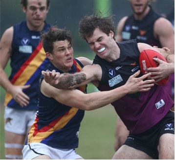 St Bedes/ Mentone Tigers won a hard-fought battle against Old Haileybury by 23 points at Brindisi Street on Saturday and thereby maintained their hold on second position on the VAFA Premier B. Kicking with strong 6 goal northerly (later to develop into a quasi-hurricane….), Old Haileybury failed to take advantage of their on-field dominance and eventually posted a wasteful 5 goals 7 to 1 goal quarter and despite a 31 point lead at quarter time appeared to have squandered their opportunity. The Tigers were also slow to get going in the second with the strengthening breeze/gale but with Alex Smout and James Tyquin dominating the centre of the ground the local team began to get their forward thrusts a lot more co-ordinated to the end that in a quick flurry mid-quarter they took the lead and with a 7 goal 3 to a solitary point turned at the half with a 13 point ascendency. In the third, with the Bloods backed by the aforementioned hurricane….the Mentone team got to work to deny Haileybury any clean ball in the forward half and with John Cayhan and Darcy Holden at the bottom of every pack and barging out into space the Tigers restricted the visitors to 2 goals 7 and a three quarter time lead of a miserable 5 points. In the last, St Bedes demonstrated their desire to participate in the upcoming finals series, and with Chris Mangoni and Jaryd Robertson outstanding, repelled every opposition forward foray and launched countless attacks to ensure the Tigers came home with a satisfying 23 point victory in the most trying conditions of the season. The Development Team recovered from two weeks of well below par performances to defeat the lowly Old Haileybury by over 20 goals with Johnny Dawes, Josh Heron, Mitch Coen and Joel Stewart the best-performed on the day. The Under 19s consolidated their third position on the ladder with a 116 point victory away to Whitefriars with Reagan Maddaford, Zac Calvez, Trent Pastura and Lachie Wigney among the best. Similarly, the U19 Development Team consolidated their fourth position on the ladder with an 119 point victory over Old Paradians with Tate Stainer (6 goals), Adam Thatcher, Ryan Mravljak (3 goals) and Connor Ladds the best. β’ Next Saturday the Under 19s and 19s Development Team are at home at Brindisi Street against Old Carey and Mazenod (currently third) in games that will shape the respective teams finals aspirations while the Thirds travel to St Mary’s Salesian in one last quest for glory. The Seniors and Development Team have a bye this week before taking on AJAX on Saturday 13th – coincidentally the day of the 2006 Premierships Re-union in which the resurgent Tigers defeated AJAX by a solitary point in in their feted Grand Final victory at Sandringham’s Beach Oval in September 2006.